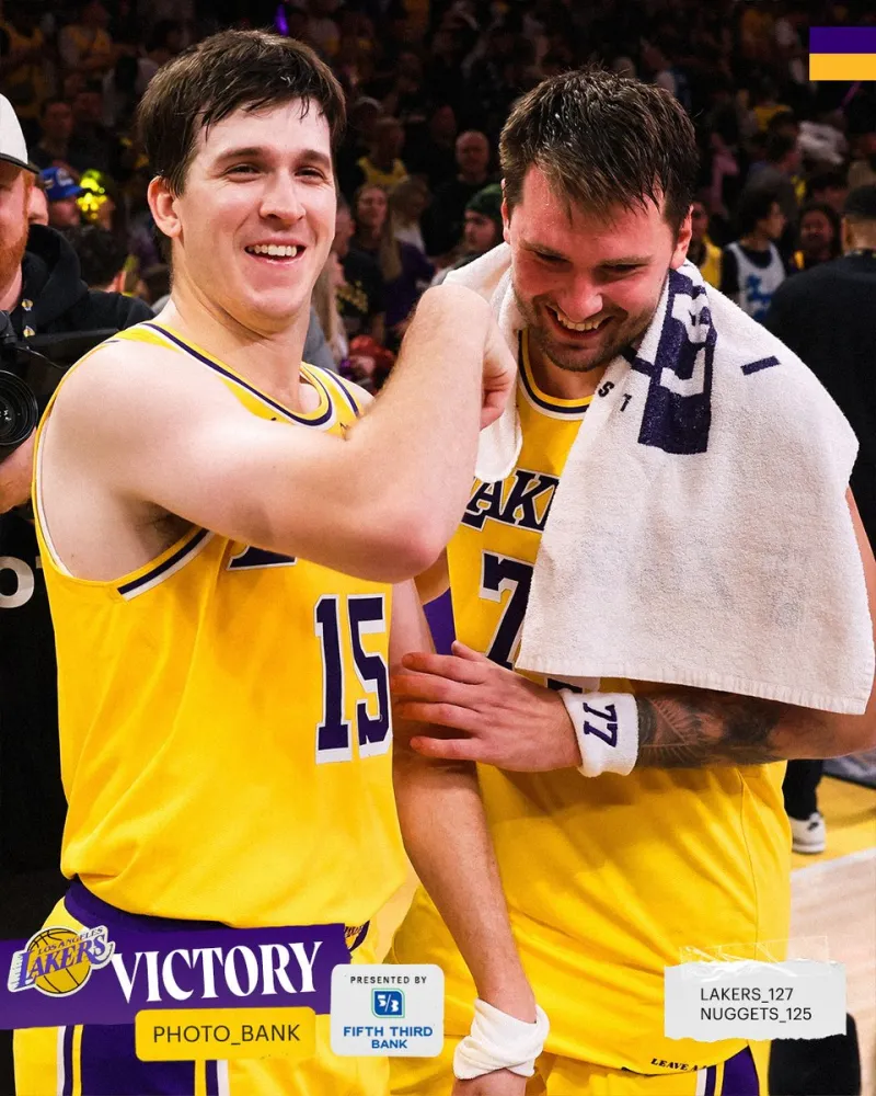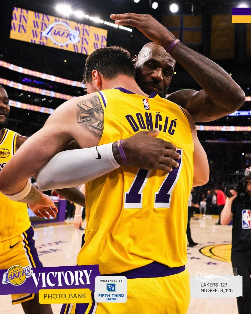 今日,湖人社媒回顾昨日战胜掘金比赛中东契奇与队友庆祝胜利的瞬间,并配文:“那场比赛太精彩了!”